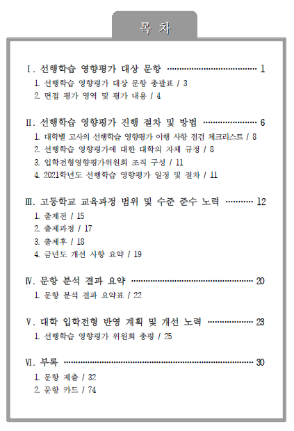2021학년도 선행학습 영향평가 결과보고서(면접 기출문제 포함)