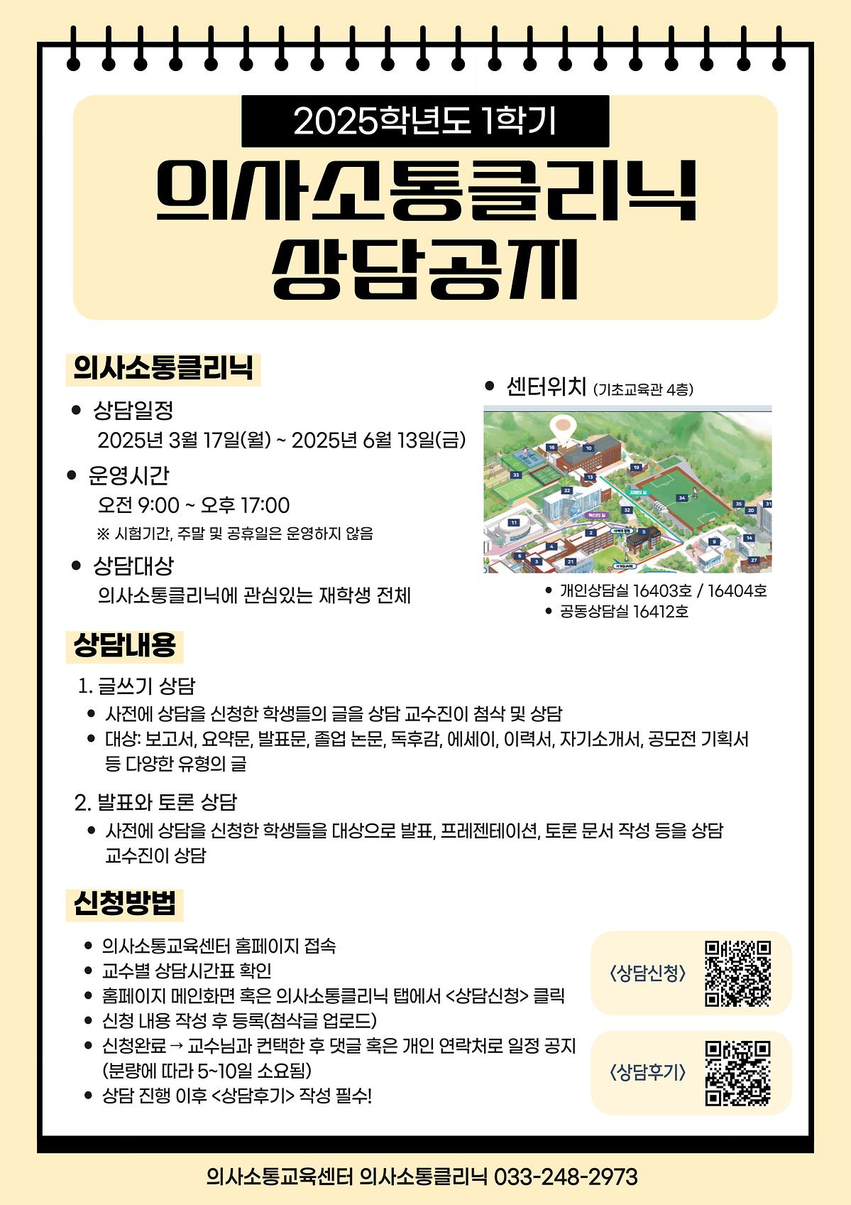 2025-1학기 의사소통클리닉 상담 신청 안내