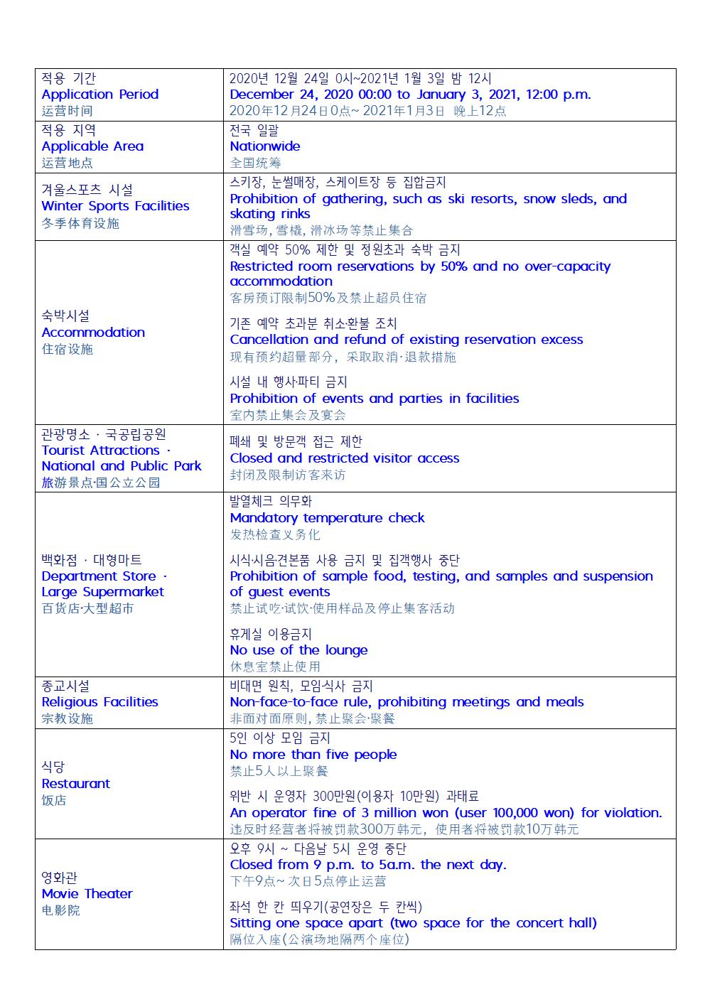 연말연시 시설에 따른 특별방역 강화 조치 안내