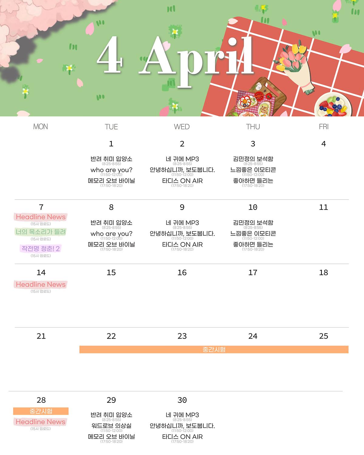 🧺HLBS 4월 편성표🍃