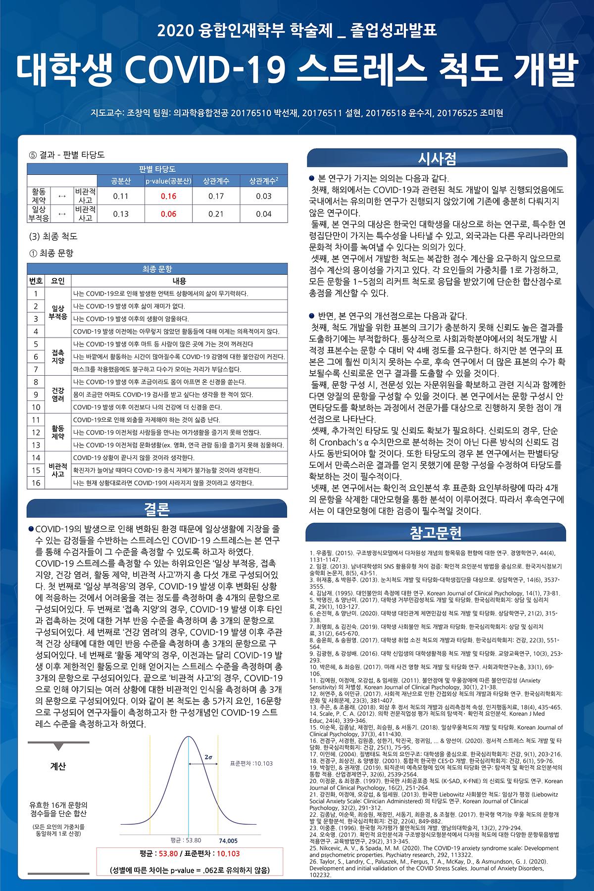 [2020 의과학융합전공 졸업성과발표] 대학생 COVID-19 스트레스 척도 개발