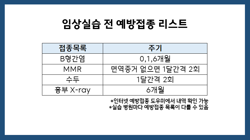 [필독] 임상실습 전 예방접종 리스트 안내