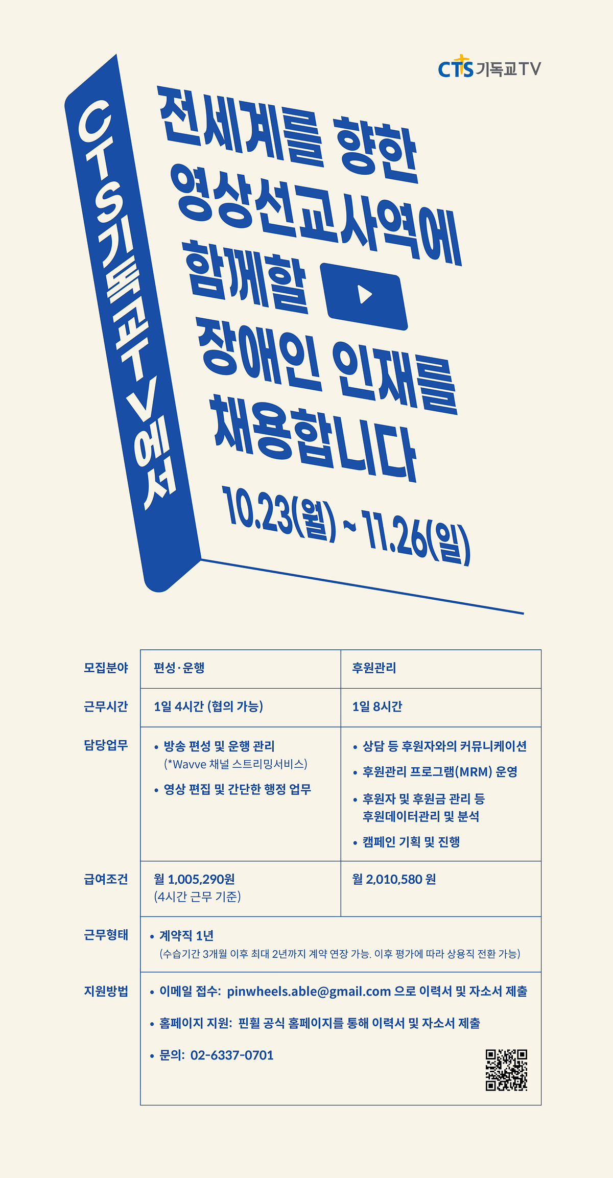 ■ CTS 기독교TV에서 아래와 같이 장애인재 채용을 실시하오니 확인 바랍니다.