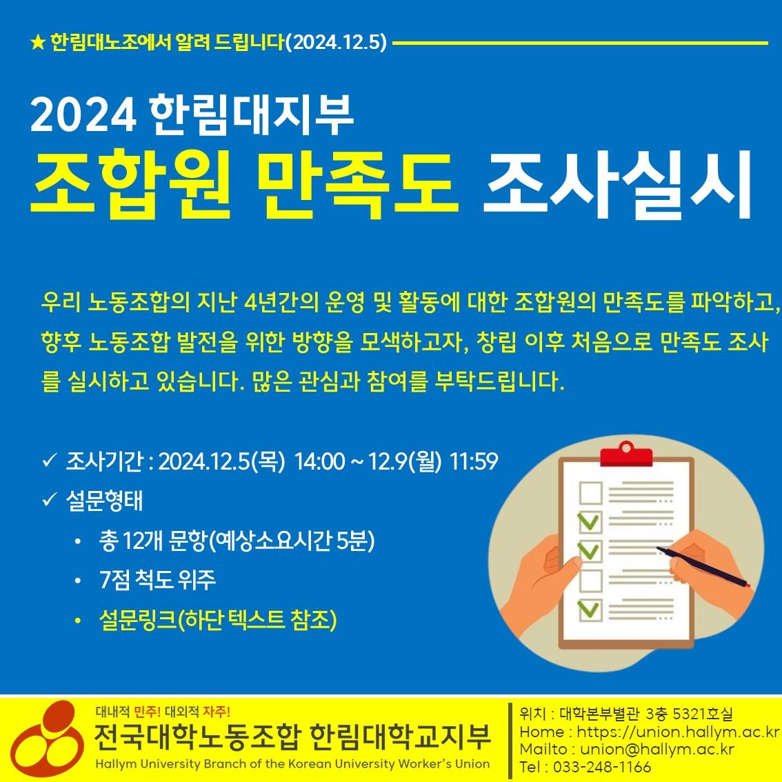 20241205 2024 한림대지부 조합원 만족도 조사실시